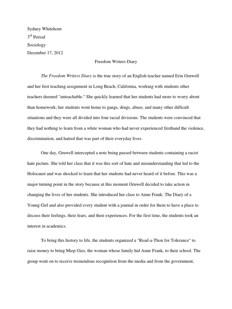 Freedom Writers Summary Paper The Freedom Writers Diary Summary The Freedom Writers Diary Written By Erin Gruwell And Her Students Took Place In Long Course Hero