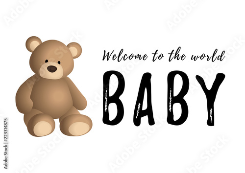 Calligraphy Lettering Of Welcome To The World Baby In Black And Brown Bear On White Background For Decoration Poster Banner Postcard Greeting Card Decor Print Sticker Cover Scrapbooking Album Stock Vector Adobe