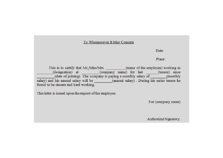 Whomsoever It May Concern Format Letter