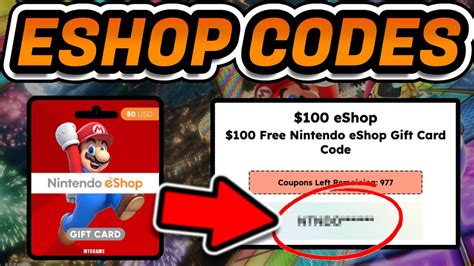 Step 3 Wait for a few seconds to process the algorithm. Free Nintendo eShop codes for your Nintendo games are offered by different retail stores websites and giveaways as a way to add credit to your Nintendo eShop store. Free Nintendo Switch Codes Here are some free Nintendo Switch codes so you can take advantage of them and earn some extra cash that will come in handy for any of your games.