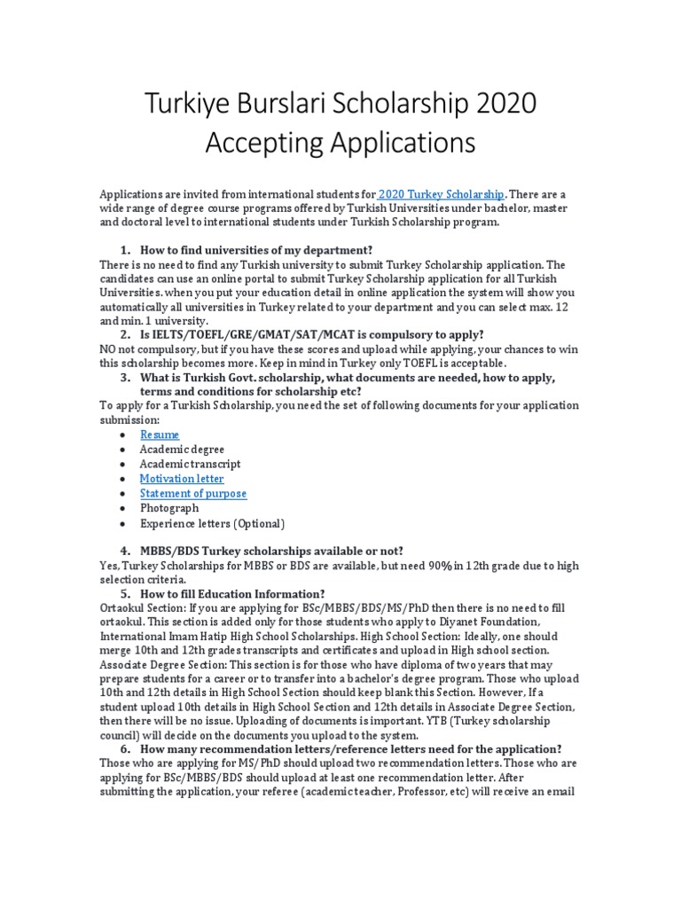 Letter Of Intent Turkey Burslari Scholarship 2020 How To Apply For Turkey Scholarship Part 2 Youtube