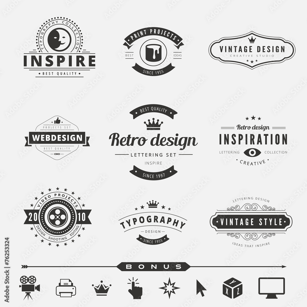 Retro Vintage Labels Logo Design Vector Typography Lettering Wall Mural Sellingpix