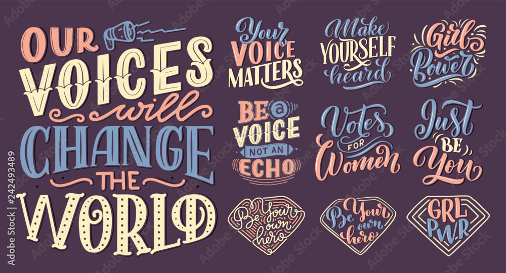 Wall Murals Set Of Lettering Quotes About Woman Voice And Girl Power Calligraphy Inspiration Graphic Design Typography Element Hand Written Postcard Cute Simple Vector Sign Hand Drawn Style Textile Print Nikkel